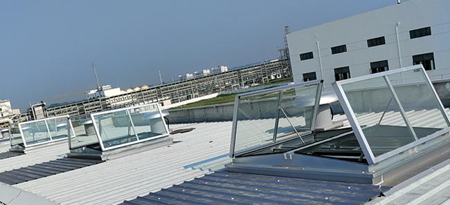 我公司承接安徽寧億泰科技有限公司乙類、丙類倉庫電動(dòng)排煙天窗工程,選用三角形排煙天窗,配置螺桿開窗機(jī)、防爆開窗機(jī)、消防聯(lián)動(dòng)控制裝置,天窗及所有配套產(chǎn)品已經(jīng)全部安裝完成。