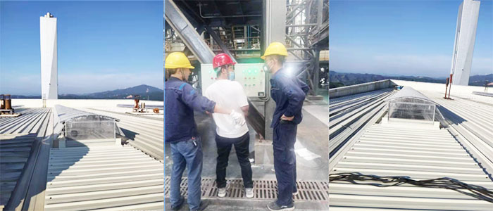 8月19日把產(chǎn)品發(fā)貨贛州,安裝人員 隨后趕至現(xiàn)場(chǎng)開(kāi)安全教育會(huì)議,查看現(xiàn)場(chǎng)時(shí)發(fā)現(xiàn)廠房?jī)?nèi)設(shè)備進(jìn)不去,鑫友們商議好布線方案經(jīng)電廠副總同意后開(kāi)始施工布線。高度太高,從九層穿線至三層,安裝人員克服困難,倍道而進(jìn),爭(zhēng)取早日交付。