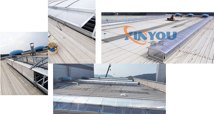 1. 圓拱型電動(dòng)采光排煙天窗是工業(yè)建筑屋頂常用的一種通風(fēng)采光設(shè)施,外觀優(yōu)美、通風(fēng)排煙兼顧自然采光,可實(shí)現(xiàn)消防聯(lián)動(dòng)控制,滿足消防排煙要求。
