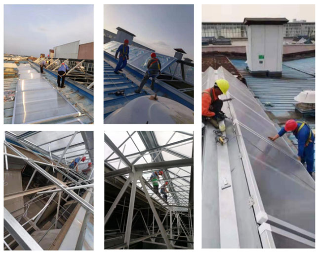接到訂單任務(wù)后,鑫友各個崗位各司其職,無需豪言壯語,默默行動詮釋一切身為鑫友人的職責(zé),保證生產(chǎn)進(jìn)度與產(chǎn)品質(zhì)量。售后安裝人員先教育后上崗,不違章作業(yè),嚴(yán)格遵守安裝工藝做到精確無誤差。10月12日九百多平米天窗,四百二十臺開窗器等產(chǎn)品已經(jīng)全部配置完成,安裝人員整理完已退場,等待甲方工程驗收。