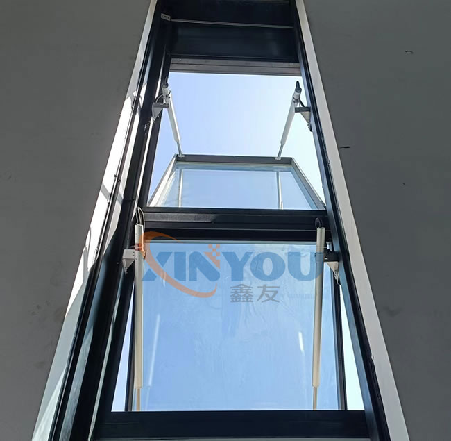 鑫友承建新疆十二師天基大廈項目電動排煙窗工程,該工程中訂購的單鏈開窗機、螺桿開窗機及配套產品已經安裝完成,經我司調試合格。