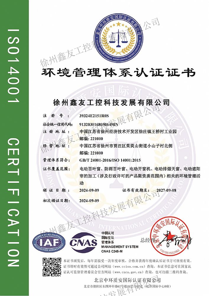 環(huán)境管理體系認(rèn)證證書(shū)