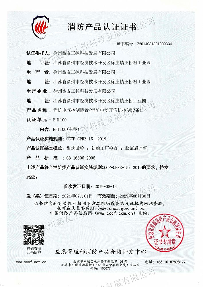 消防產(chǎn)品認(rèn)證證書(shū)EH1100