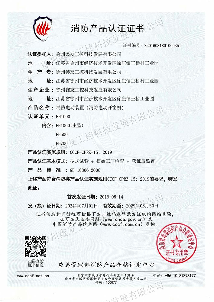 消防產(chǎn)品認(rèn)證證書(shū)EH1000...