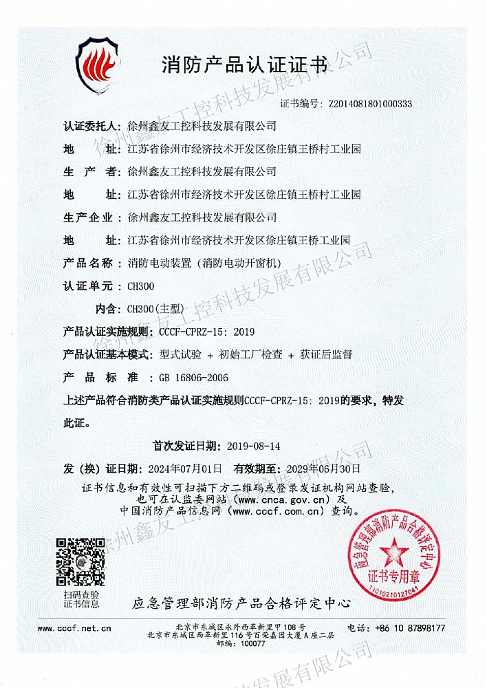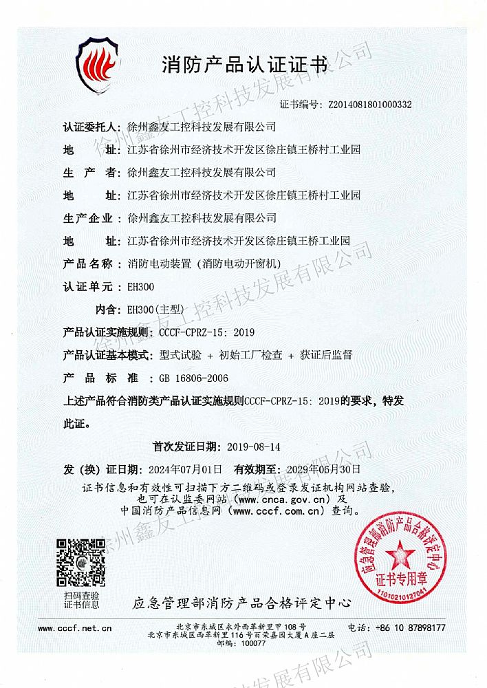 消防產(chǎn)品認(rèn)證證書(shū)EH300