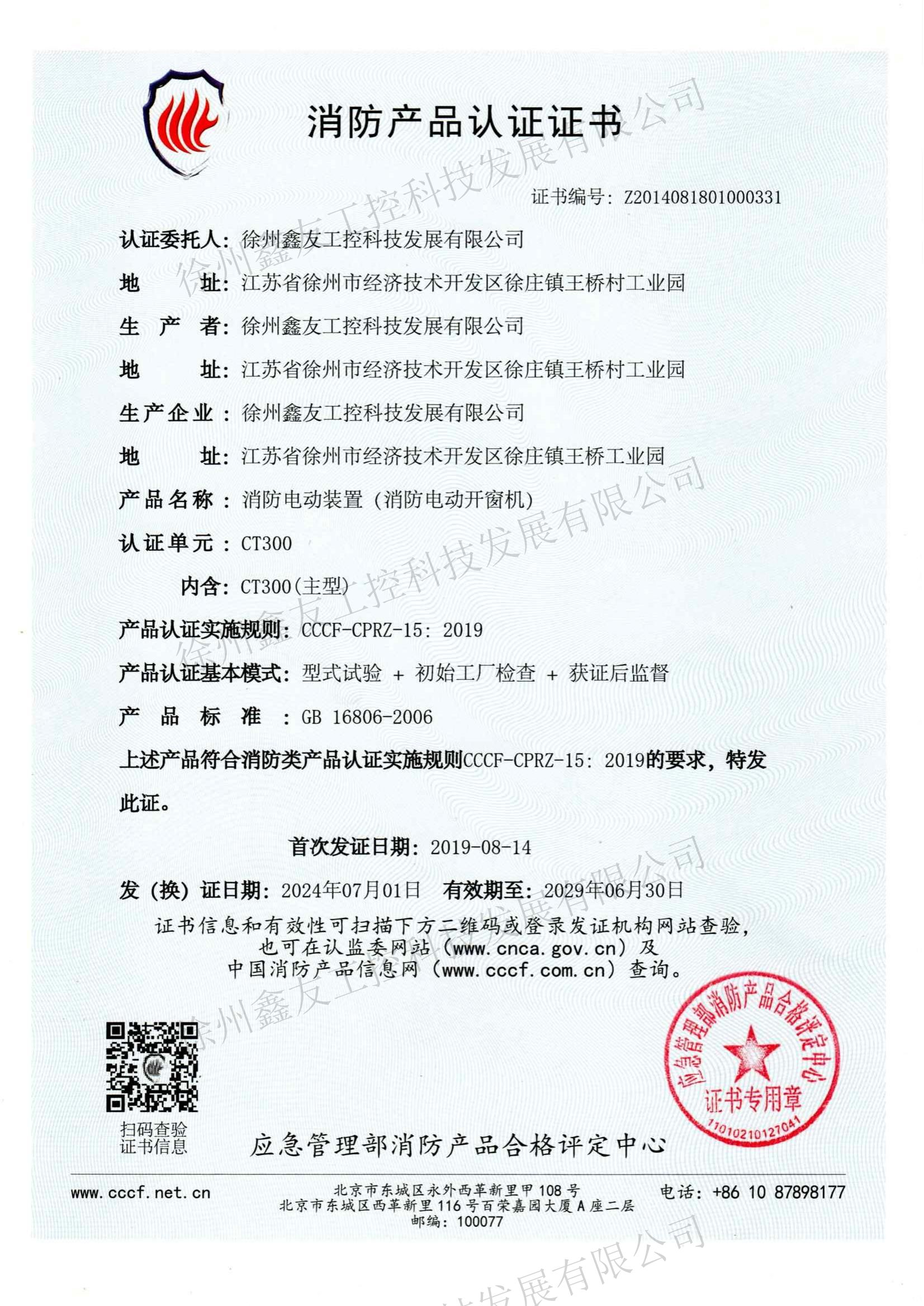 消防產(chǎn)品認證CH1000CH750CH550(2019.8.14-2024.8.13)
