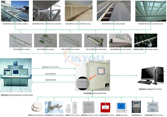 The Intelligent Ventilation Systems is composed of intelligent ventilationcontrol box, trigger equipments and actuators. When people perform daily indoortemperature regulation, control box execute ventilation control of buildings bymeans of ventilation button, the timer and temperature sensor.