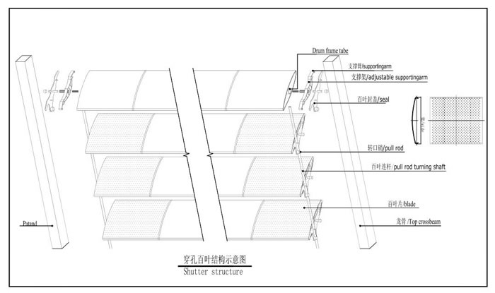 Perforated louvres are also known as pinhole shutters, elegant and graceful blade made up of special single perforating blade.Perforated louvres can decrease solar radiation and keep good light in room. Different thickness, width and hole size of blade can bring various light transmission and sunshade.