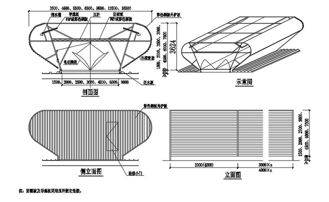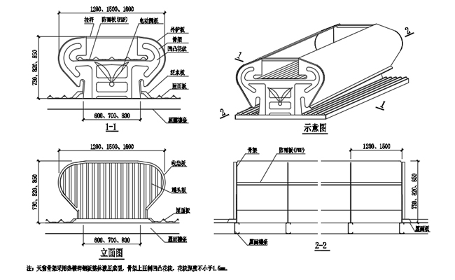 2. 主骨架和屋脊通風(fēng)天窗基座采用焊接或者螺栓連接,與屋面形成一個(gè)整體,具有較好的結(jié)構(gòu)安全性能。