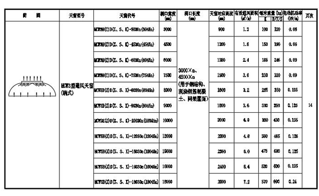 2. 通風(fēng)天窗按有無(wú)閥板分為啟閉式和開(kāi)敞式兩種類型。啟閉式有閥板,分為電動(dòng)型、消防聯(lián)動(dòng)型,電動(dòng)型代號(hào)為D,消防聯(lián)動(dòng)型代號(hào)為X,開(kāi)敞式無(wú)閥板,代號(hào)為K。