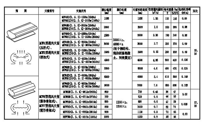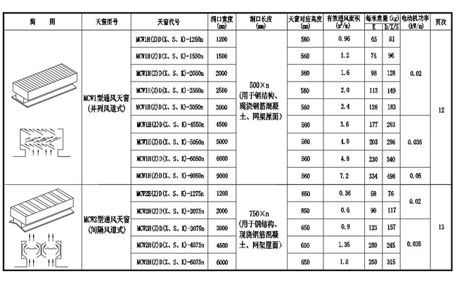1. MCW1型通風(fēng)天窗(并列風(fēng)道式)